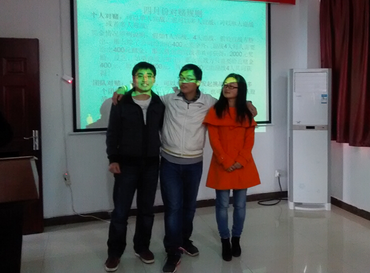 2015年4月3日于公司培訓(xùn)室召開月度銷售PK活動(dòng),活動(dòng)介紹了新來員工,評(píng)選出3月銷售前三名和團(tuán)隊(duì)銷售冠軍并開展了有益身心的小游戲,場(chǎng)面活潑,氛圍熱烈。