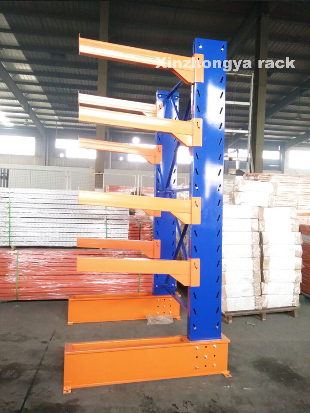懸臂式貨架采用組合式結(jié)構(gòu),適用于存放長(zhǎng)物料、環(huán)型物料、板材、管材及不規(guī)則貨物。根據(jù)承載能力可分為輕、中、重量型;根據(jù)結(jié)構(gòu)可以是單面或雙面,懸臂式貨架具有結(jié)構(gòu)穩(wěn)定,載重能力好、空間利用率高等特點(diǎn)。懸臂式貨架立柱多采用H型鋼或冷軋型鋼,懸臂采用方管、冷軋型鋼或H型鋼,懸臂與立柱間采用插接式或螺栓連接式,底座與立柱間采用螺栓連接式,底座采用冷軋型鋼或H型鋼。貨物存取由叉車(chē)、行車(chē)或人工進(jìn)行。貨架高度通常在2.5米以內(nèi)(如由叉車(chē)存取貨則可高達(dá)6米),懸臂長(zhǎng)度在1.5米以內(nèi),每臂載重通常在1000KG以內(nèi)。此類貨架多用于機(jī)械制造行業(yè)和建材超市等。加了擱板后,特別適合空間小,高度低的庫(kù)房,管理方便,視野寬闊,與普通擱板式貨架相比,利用率更高;根據(jù)承載能力可分為輕量型、中量型、重量型三種。