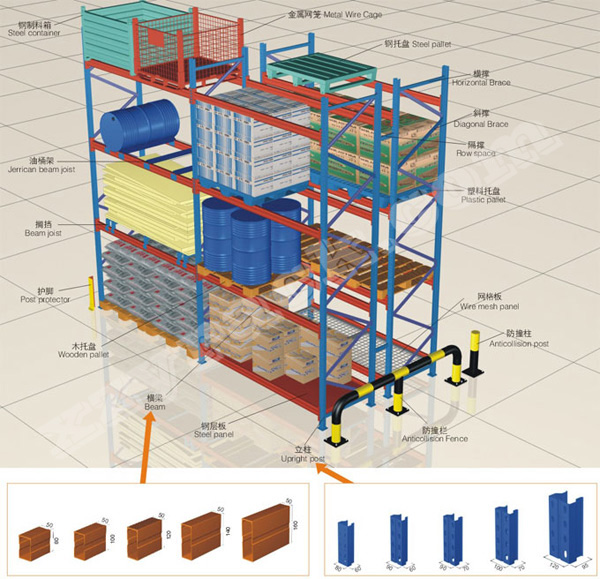 橫梁式貨架空間利用率高、存取靈活方便、配套設(shè)備簡單、成本便宜、能快速安裝及拆卸,輔以計(jì)算機(jī)管理或控制,基本能達(dá)到現(xiàn)代化物流系統(tǒng)的要求,廣泛應(yīng)用于制造業(yè)、第三方物流和配送中心等領(lǐng)域,既適用于多品種小批量物品,又適用于少品種大批量物品。此類貨架在高位倉庫和超高位倉庫中應(yīng)用(自動化倉庫中貨架大多用此類貨架)。窄巷道貨架需要配備專用窄巷道叉車。