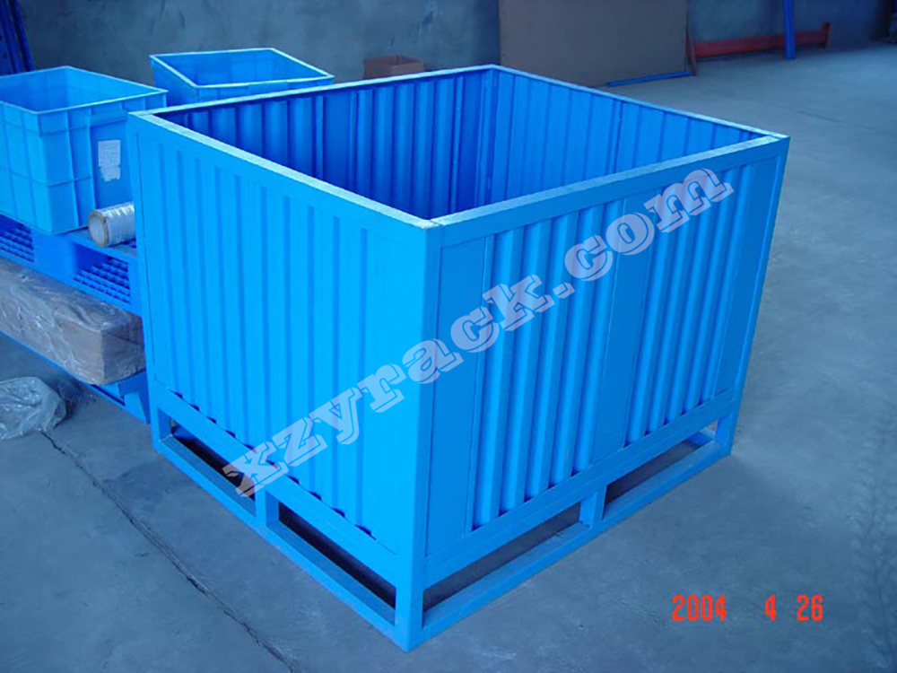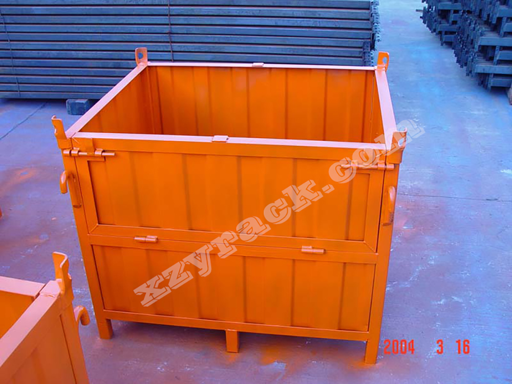 料箱又稱為鋼制料箱或金屬料箱,是在金屬平板鋼制托盤(pán)基礎(chǔ)上發(fā)展起來(lái)的,用于解決鋼托盤(pán)無(wú)法盛放散件或散狀物料弊端。一般下部像鋼托盤(pán)一樣方便叉車(chē)四項(xiàng)進(jìn)叉,上部可吊裝,也可以進(jìn)行堆垛,在存儲(chǔ)貨物時(shí),可以堆垛四層,可實(shí)現(xiàn)倉(cāng)儲(chǔ)的立體化。根據(jù)結(jié)構(gòu)一般可分為固定式、折疊式、根據(jù)板材可分為箱式、網(wǎng)式兩種形式。