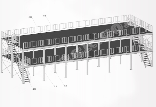 鋼結(jié)構(gòu)平臺主要由立柱、主梁、次梁、樓面板、樓梯及護(hù)欄組成。整體組裝,無須現(xiàn)場焊接。根據(jù)承載要求不同選擇不同的材料規(guī)格設(shè)計(jì),整體剛性強(qiáng),適用性廣。