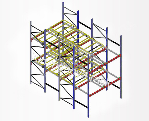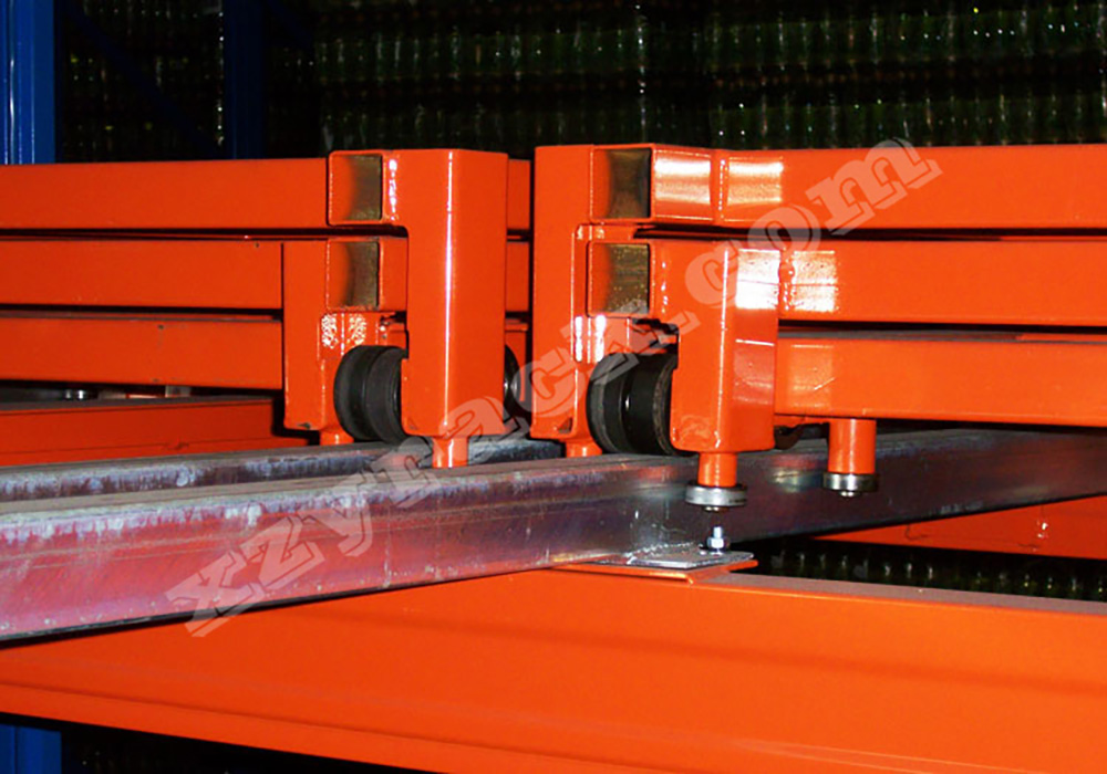 與駛?cè)胧截浖堋㈦p深度橫梁式貨架相比,后推式貨架具有存取貨物方便的優(yōu)勢,此種貨架存儲進(jìn)深以2-4個托盤為宜,深可達(dá)5個托盤。